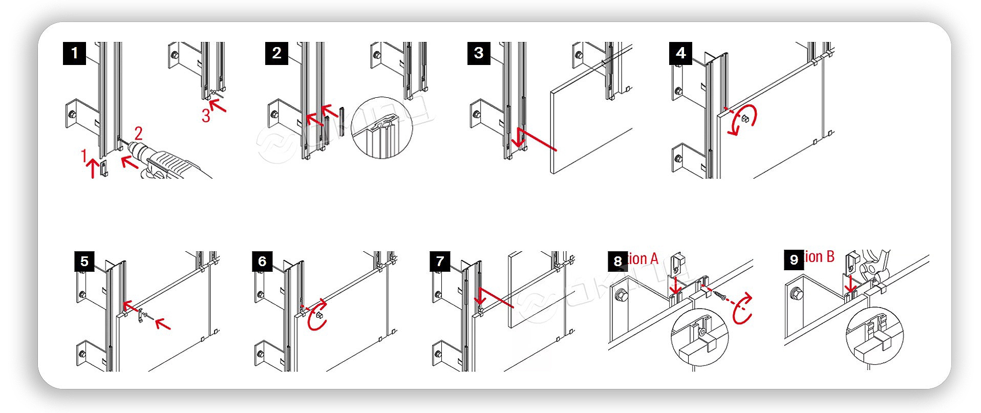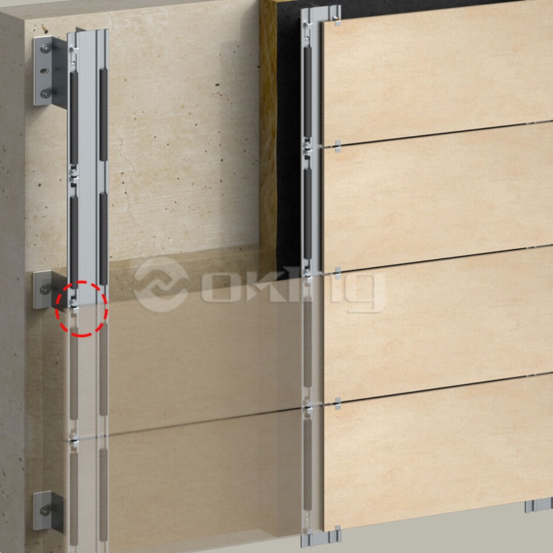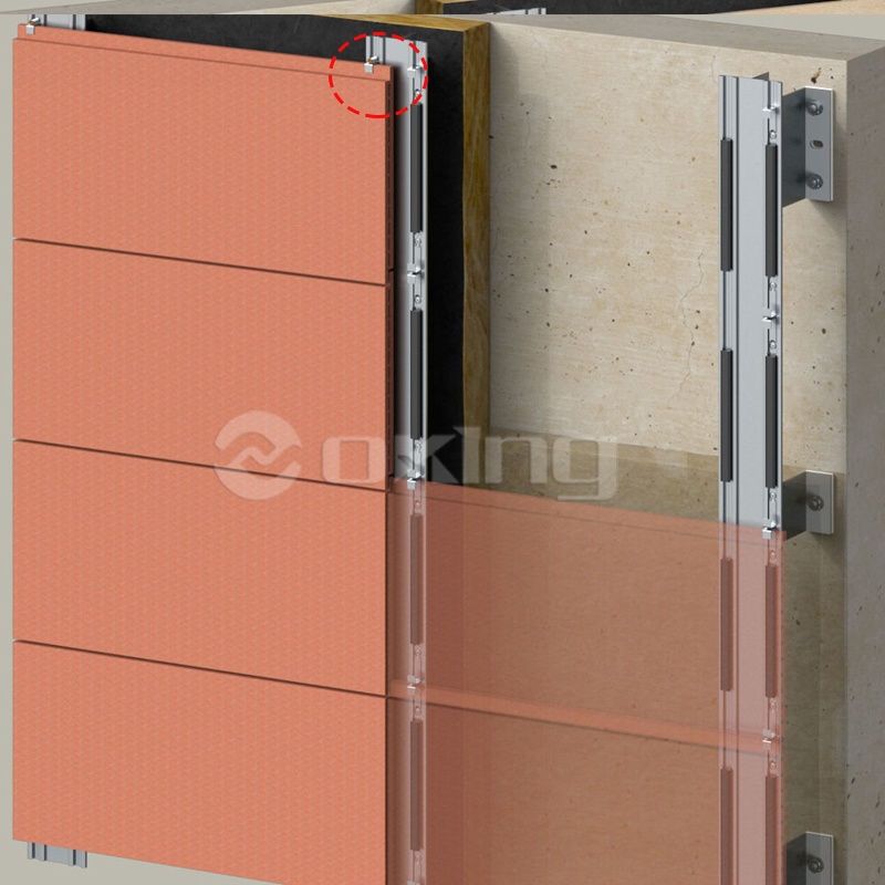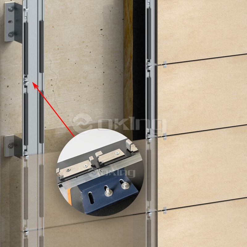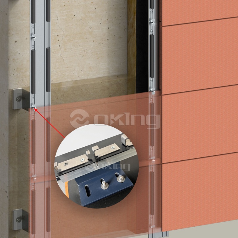 Córas sainithe socraithe painéil aghaidhe: comhoiriúnach le suiteáil folaithe painéil terracotta agus feistiú nochta na bpainéal ceirmeach. Feistithe le roghanna ilathraitheacha le haghaidh riachtanais iarratais éagsúla, glacann sé teanntáin chiumhais infheicthe chun painéil tanaí aghaidhe a shocrú (m.sh. criadóireacht) agus teanntáin chiumhais ionsuite chun painéil terracotta a shocrú i bhfolach, ag cinntiú éifeachtaí seasta agus oiriúnaithe socraithe.